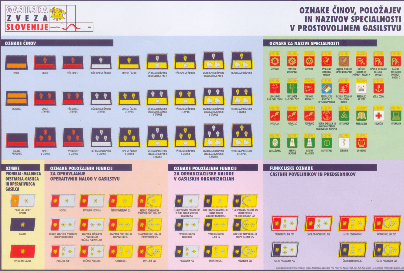 Oznake činov, položajev in nazivov specialnost v prostovoljnem gasilstvu Podrobnosti Kategorija: Društvo Oznake činov, položajev in nazivov specialnost v prostovoljnem gasilstvu